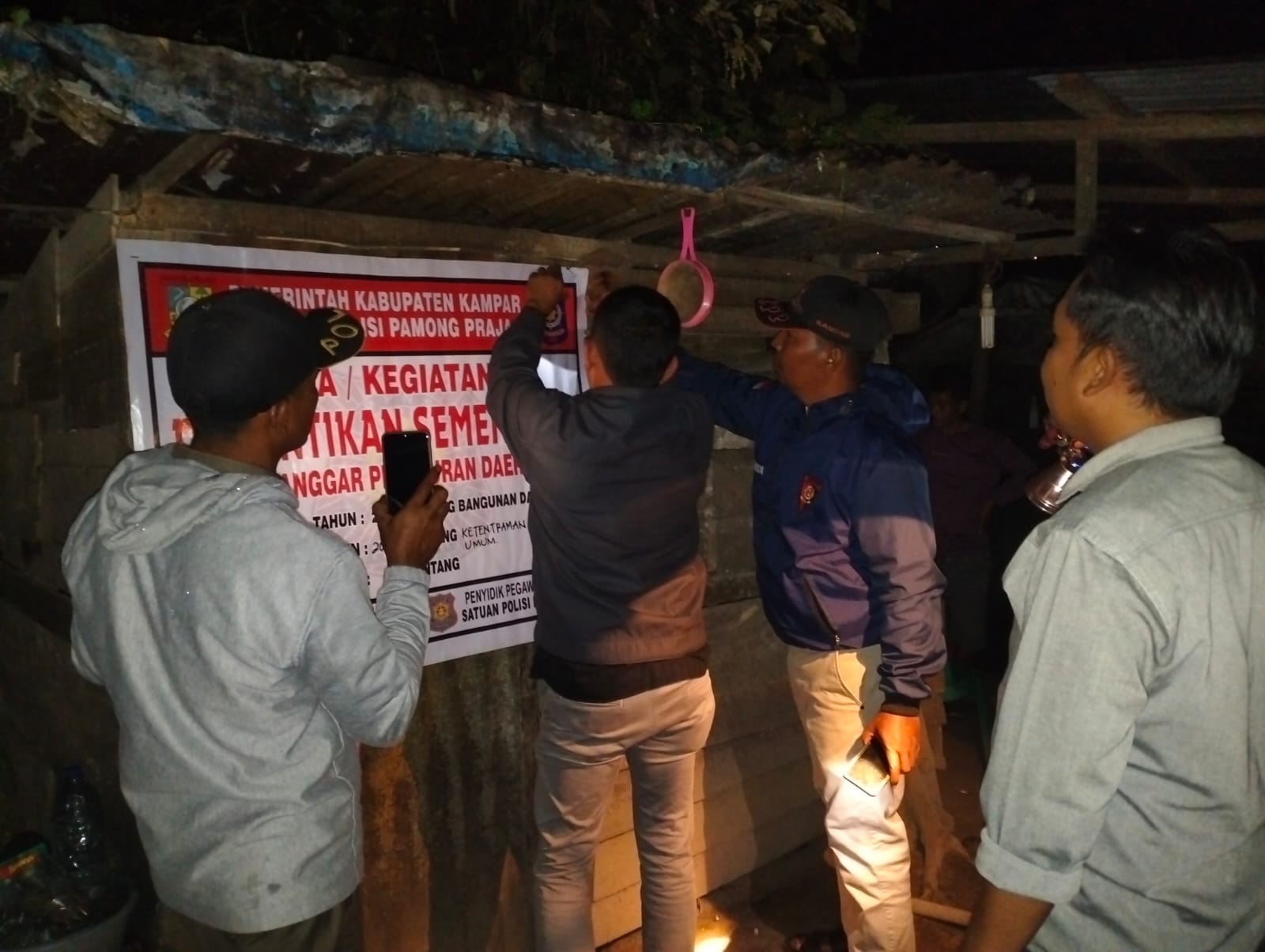 “Bersama Tim Yustisi tadi malam Sabtu (13/1/2024) sekira pukul 23.00 WIB kita telah melakukan penghentian operasional 2 buah warung Tuak yang berada di Pulau Merbau Langgini dengan memasang stiker (penyegelan) penutupan yang diduga melanggar Perda No.08 tahun 2017 tentang ketentraman dan Ketertiban Umum (Trantibum),” sebut Sawir.