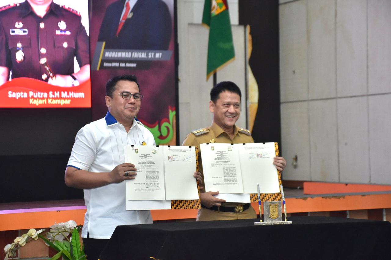 Dalam penandatanganan Nota Kesepakatan Perjanjian dan kerjasama tersebut dengan Kejaksaan Negeri Kampar Dalam Penanganan Masalah Hukum Bidang Perdata dan Tata Usaha Negara Terkait Pengamanan Barang Milik Daerah yang ada di Kabupaten Kampar.