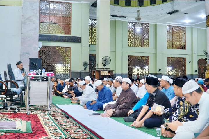 BANGKINANGKOTA(KamparUpdate.com) – Pj. Bupati Kampar Hambali, SE, MH beserta Pj. Ketua TP PKK Kabupaten Kampar Ricana Djayanti Hambali menghadiri Tabligh Akbar dalam rangka Memperingati Maulid Nabi Muhammad SAW 1446H/2024M, yang diselenggarakan di Mesjid Al-Ikhsan Markaz Islamic atau dikenal dengan Islamic Center Bangkinang Kota pada Senin (16/9).