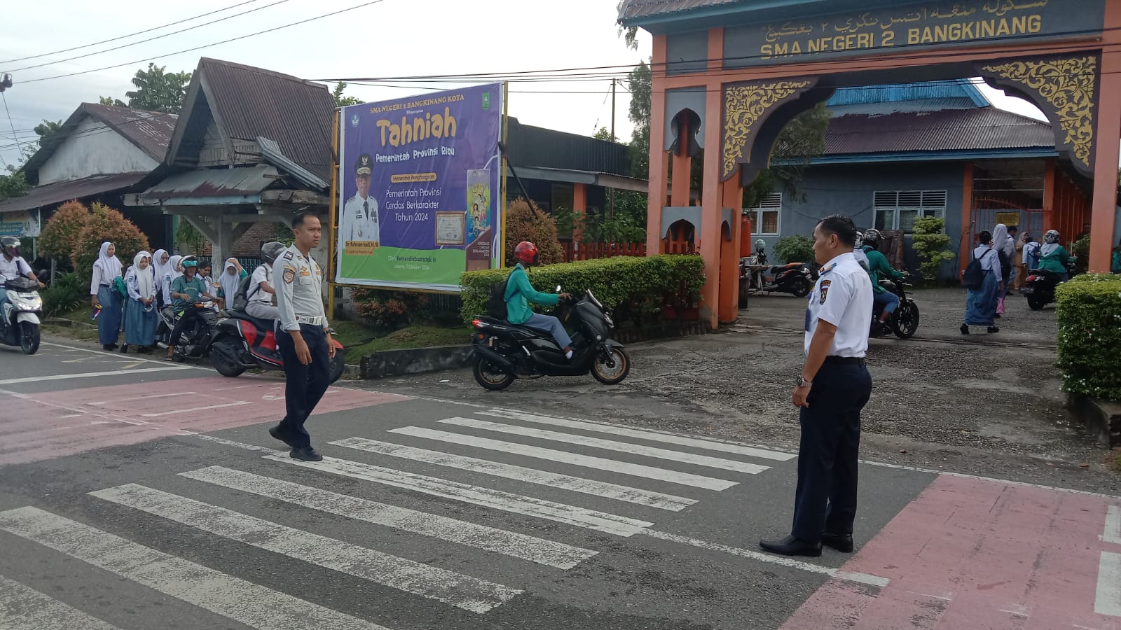 “Dishub Kampar setiap pagi hari kerja melakukan pengamanan di kawasan tertib lalu lintas. Untuk lokasinya diutamakan disetiap persimpangan dan sekolah-sekolah, untuk mengatur lalu lintas seperti membantu penyebrangan anak sekolah, mengatur lalu lintas yang macet, dan sebagainya,” pungkasnya.