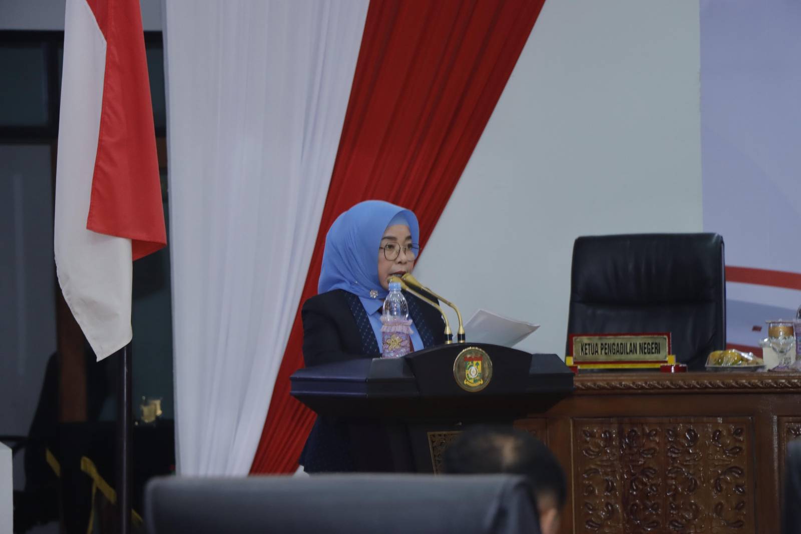 BANGKINANG KOTA – Pimpinan Dewan Perwakilan Rakyat Daerah (DPRD) Kabupaten Kampar di lantik dan diambil sumpah yang langsung oleh Ketua Pengadilan Negeri Kelas I B Bangkinang Soni Nugraha, SH, MH, selasa malam (24/12/2024) pada Rapat Paripurna DPRD Kampar.