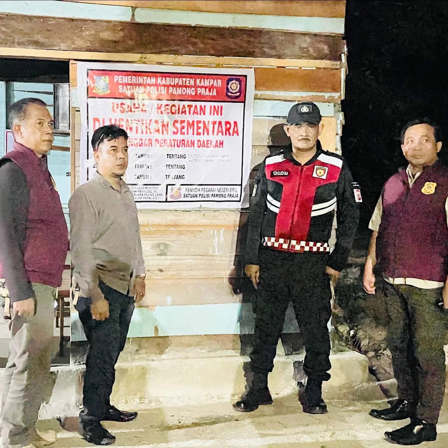 Operasi ini dipimpin langsung Kasatpol-PP Kampar Arizon yang diwakili Sekretaris Satpol-PP Kampar Ahmad Zaki serta didampingi Kasi PPNS, Kasi Hubungan Antar Lembaga, BKO TNI/Polri, dan personel Satpol PP Kampar.