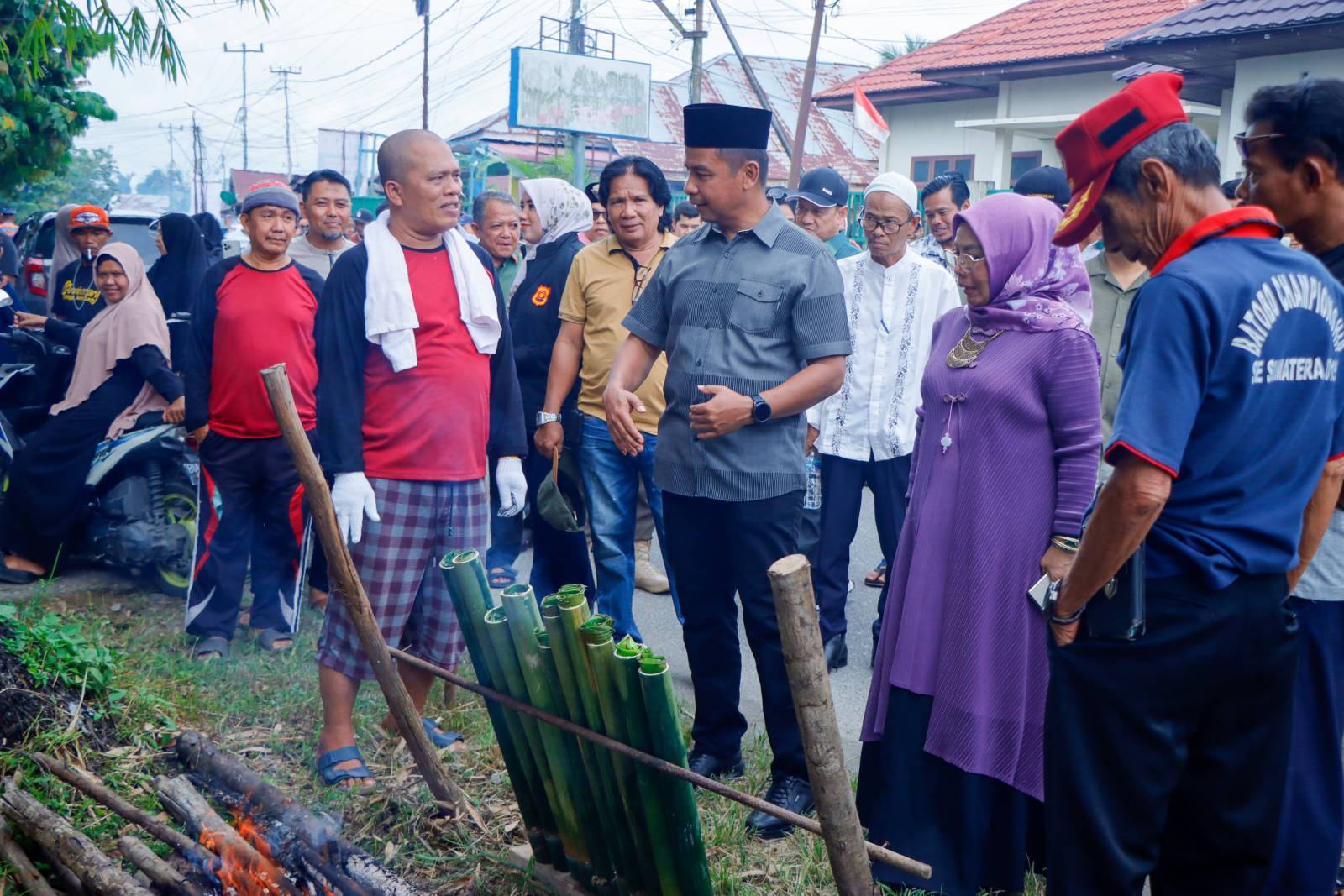 Selanjutnya Bupati Kampar dan Wakil Bupati Kampar beserta rombongan, berkenan berkeliling untuk menyaksikan prosesi memasak lemang yang dilaksanakan oleh masyarakat disepanjang jalan Dusun Kampung Godang, sembari bercengkerama dengan masyarakat setempat.(adv)