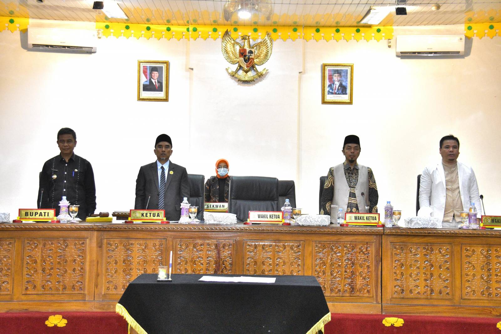 “Untuk itu, segala masukan dan saran sangat kami hargai dan akan menjadi perhatian, atas nama Pemerintah Daerah dengan hati yang tulus mengucapkan terimakasih dan penghargaan yang setinggi-tingginya kepada seluruh anggota Dewan yang terhormat, semoga upaya yang telah dilaksanakan menjadi amal ibadah kita semua. “tutupnya.